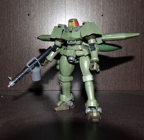 HG/GAT-02L2 ダガーL拡張装備 ダガーLさんに、 おそろしく長い装備を付けた仕様です。 デスティニーってアニメ見てないんですけど、 劇中にもこんなの出てくるんですかね。 ちなみにこの長いやつ、 ドッペルホルン連装無反動砲、 っていう、 なんかおどろ…